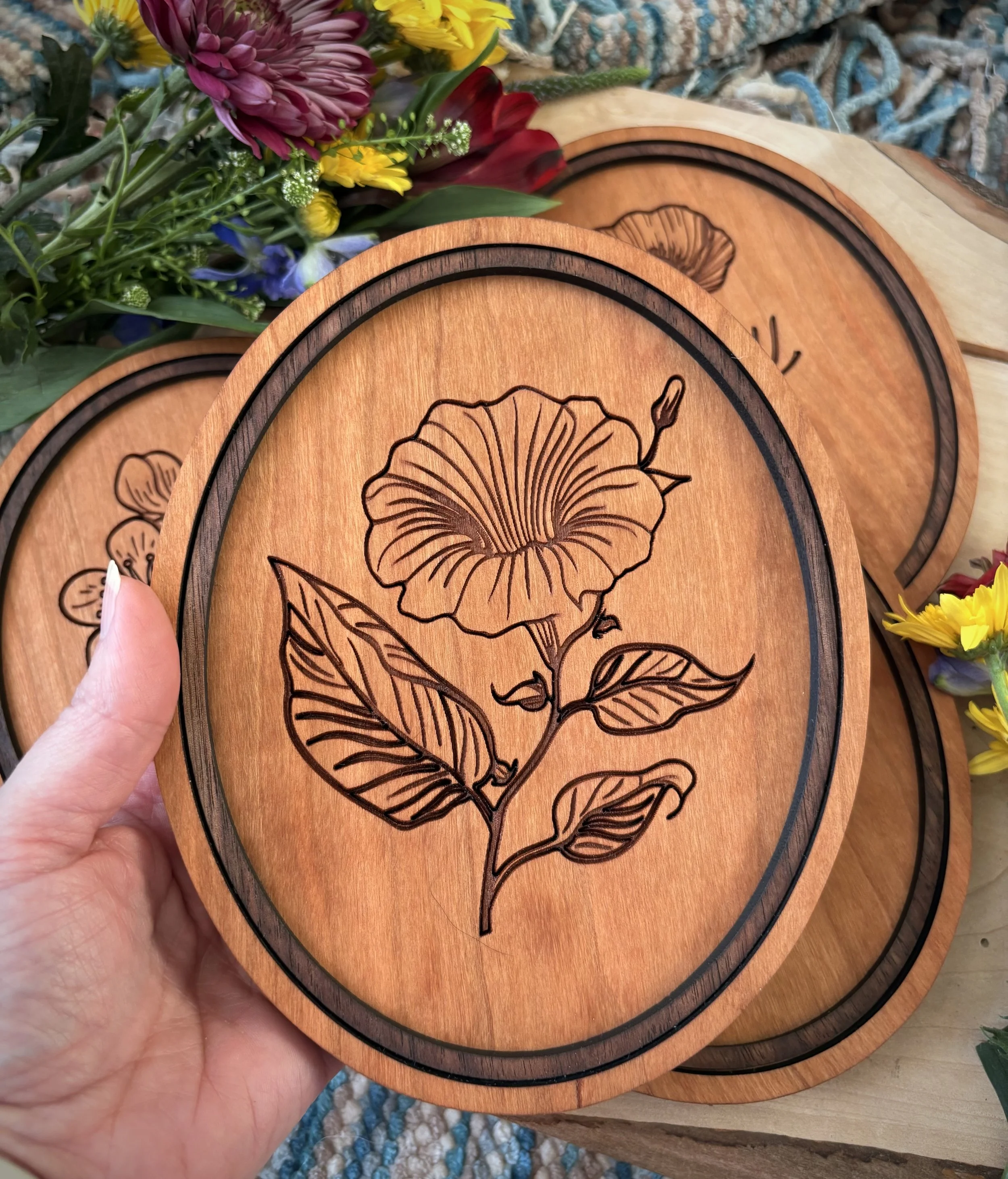 Categories: Select a Category Artwork Home Décor Kitchenware Shop Artwork | Home Décor | Kitchenware | The Original Plant Hanger $49.99 Natural Natural/Ocean Natural/Squash Natural/Copper Add To Cart Added! Flame Maple Burl Set Wall Piece $135.00 Add To Cart Added! Geometric Table Lamp $39.99 Walnut w/ Amber Shade Maple w/ White Shade Cherry w/ Green Shade White Oak w/ Grey Shade Add To Cart Added! Hardwood Spoon Set $31.99 Walnut Cherry White Oak Add To Cart Added! Monstera Tray $44.99 Add To Cart Added! Wood Butter $9.99 Add To Cart Added! The Perfect Gift Cutting Board $119.99 Add To Cart Added! Floral Engraved Propagation Station $49.99 Add To Cart Added! The Cheese Board $29.99 Walnut Cherry Add To Cart Added! Birth Month Flower Plaque $34.99 January - Snowdrop February - Primrose March - Cherry Blossom April - Daisy May - Lily of the Valley June - Rose July - Water Lily August - Poppy September - Morning Glory October - Cosmo November - Peony December - Narcissus Add To Cart Added! The Everyday Cutting Board $89.99 Add To Cart Added!